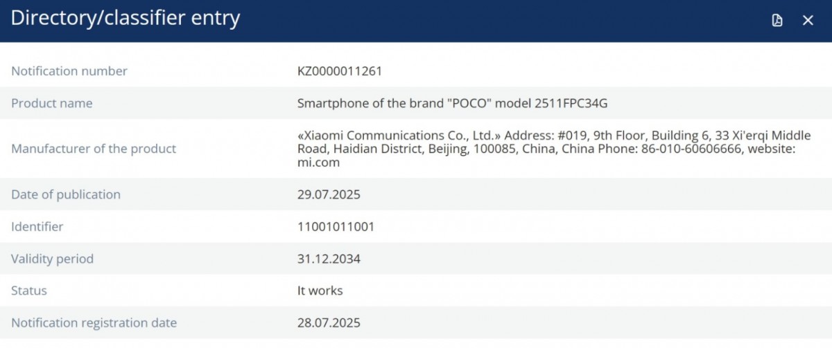 지난달에 출시된 포코 X7과 X7 Pro의 후속 모델인 포코 X8 Pro이 곧 출시될 것으로 보이다. 이 장치는 EEC 인증을 받은 모델 번호 2511FPC34G로 개발 중인 것으로 알려졌다.