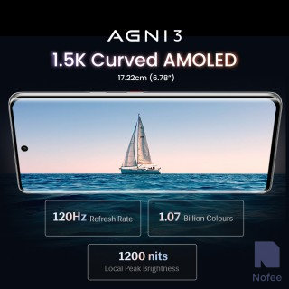 Agni 3는 1.5K 해상도와 120Hz 주사율을 갖춘 6.78인치 곡면 AMOLED 디스플레이를 지원한다. 또한 1,200니트의 로컬 최대 밝기 등급을 가지며 펀치홀 컷아웃 내부에 16MP 전면 카메라를 탑재했다.