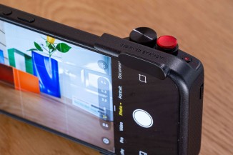 조작면에서는 두 단계의 셔터(반按으로 초점 잠금, 완전히 누르면 촬영), 셔터 주변의 줌 레버, 작은 동영상 버튼, 그리고 노출 보상, 필터, ISO, 셔터 속도, 화이트 밸런스 등을 조절할 수 있는 커스터마이징 가능한 다이얼이 제공된다. 그립은 뒷면에 작지만 편리한 엄지 손가락 받침대가 구현되어 있어, 한 손으로의 조작에 매우 도움이 된다.