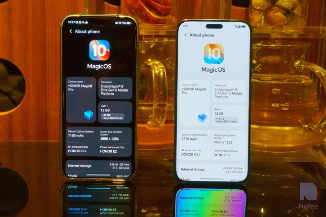 아너 Magic8 Pro: 글로벌 변형(왼쪽) 및 EU 변형(오른쪽)