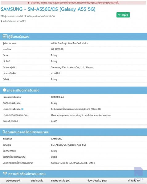 삼성 갤럭시 A55 5G, 태국 NBTC 인증을 받고 출시가 앞당겨진다