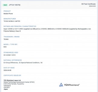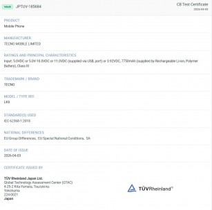 테크노는 3월 초 바르셀로나에서 열린 MWC에서 포바 8을 공개했지만, 이 스마트폰은 여전히 공식적으로 발표되지 않았다. 해당 기기는 TUV 목록에 등장했으며, 전작보다 훨씬 큰 7,750 mAh 배터리를 탑재하고 있음을 보여주고 있다.