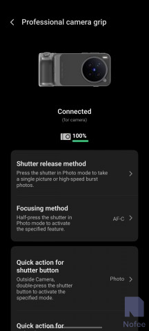 그립은 케이스에 밀어 넣고 USB-C 포트를 통해 휴대폰에 연결된다. 이 포트는 통신뿐만 아니라 휴대폰 충전에도 사용된다(그립에는 자체 2300mAh 배터리가 있다).