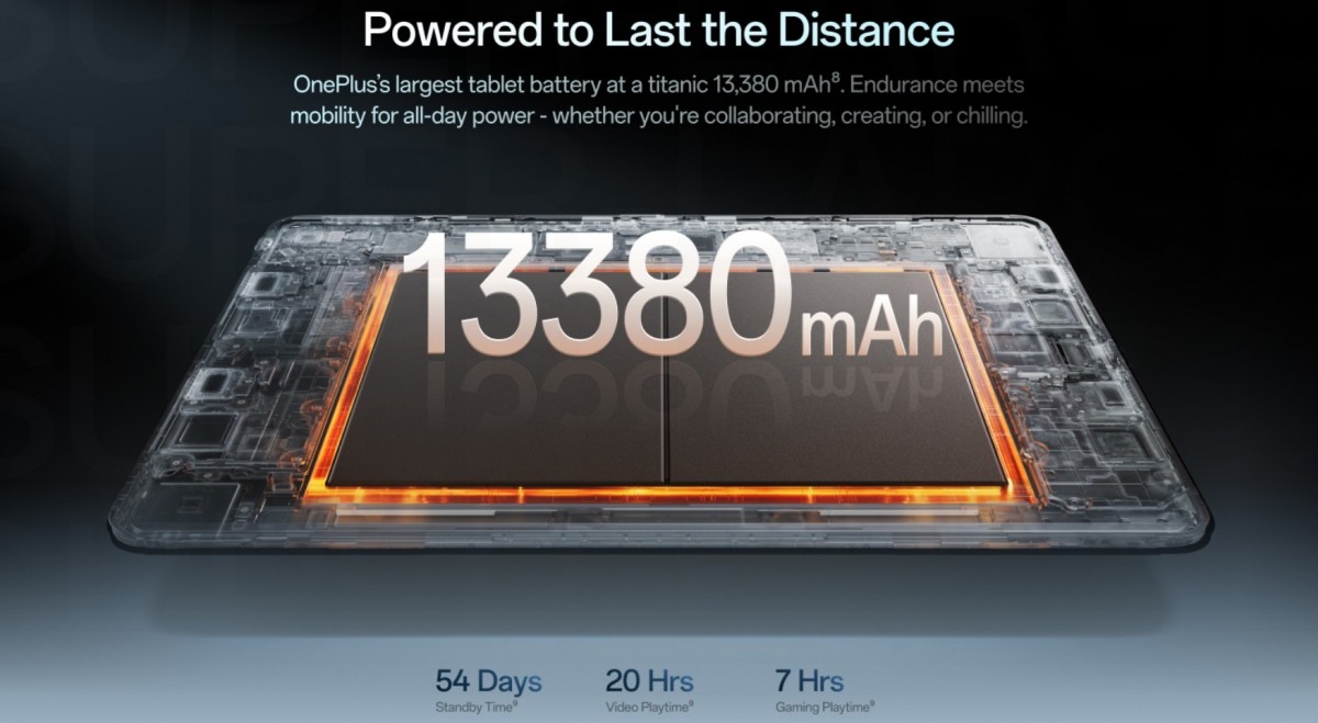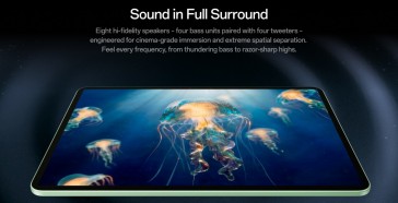 이 제품은 3.4K 해상도 디스플레이와 함께 8개의 고음질 스피커를 탑재했다. 원플러스 패드 4의 전원은 13,380mAh 배터리와 80W 슈퍼브이오크 충전을 지원하는 것으로 구성되었다.