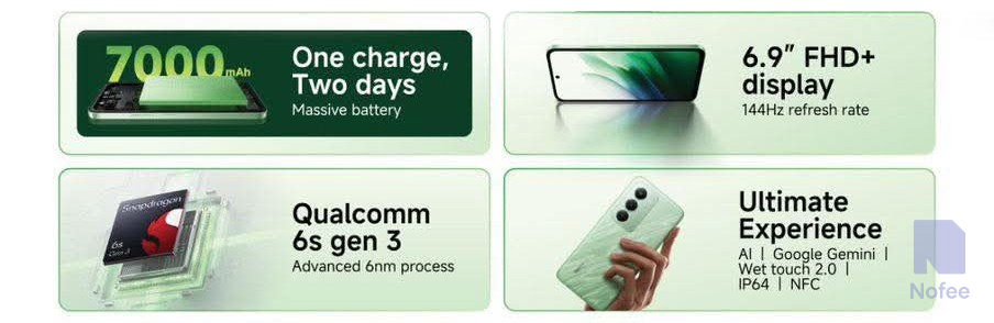 또한 이 전화기는 Qualcomm 스냅드래곤 6s Gen 3로 구동될 것으로 알려졌다. 레드미 번호 시리즈는 일반적으로 5G 모델에 스냅드래곤 4 시리즈 칩을 사용하기 때문에, 이 수치는 평소보다 높게 나온다. 하지만 6nm 칩은 그다지 진보된 것은 아니지만 여전히 일반적인 실리콘보다 한 등급 높다.