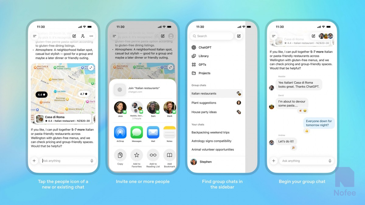 오픈아이(OpenAI)는 최근 ChatGPT에서 그룹 채팅 기능을 시험하기 시작했다. 이 새로운 기능은 사용자가 가족, 친구 또는 동료와 협력하여 아이디어를 논의하거나 결정을 내릴 수 있도록 한다.