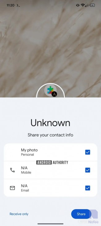 Gesture Exchange에는 Contact Exchange라는 활동도 포함되어 있으며 NFC을 사용한다. 위에서 구글의 안드로이드용 NameDrop이 어떤 모습인지 확인할 수 있다. 왼쪽 스크린샷은 기능을 시작할 때 표시되는 첫 번째 화면을 보여준다. 사진, 전화번호, 이메일 주소 등 공유하고 싶은 세부정보를 선택하는 곳이다. 정보를 공유하지 않으려면 수신 전용을 선택할 수도 있다.