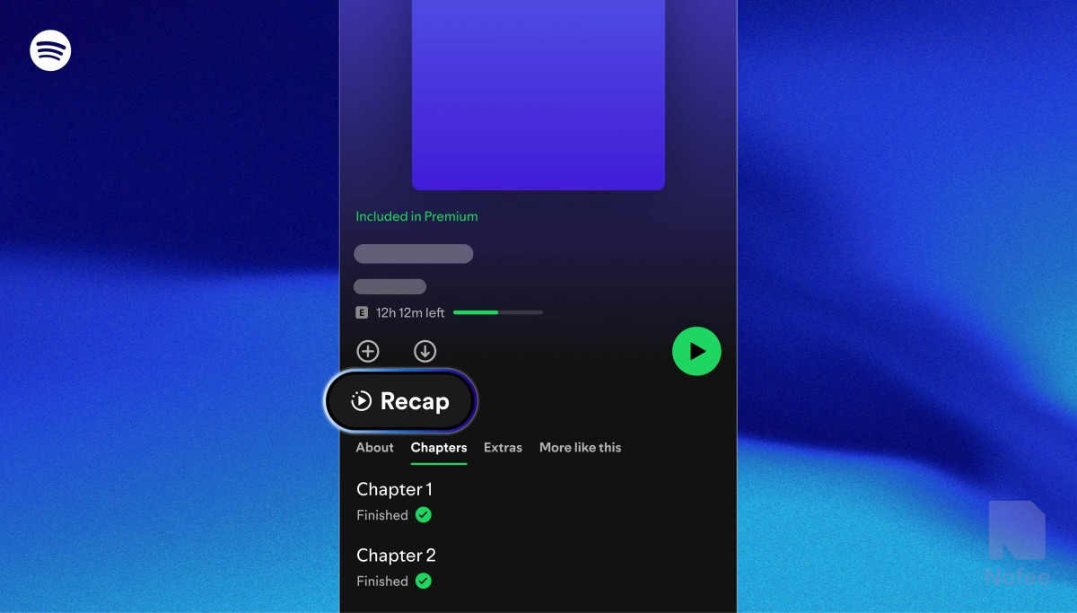 이 기능은 이미 들은 책의 일부만 다루고 있으며, TV의 "이전에 켜진" 기능과 비슷하게 Recaps을 사용하면 다시 들을 필요 없이 스토리에 쉽게 참여할 수 있다. Spotify은 오디오북 청취를 더욱 원활하고 직관적이며 청취자 친화적으로 만들기 위한 지속적인 노력의 일부로 Recaps을 개발했다.