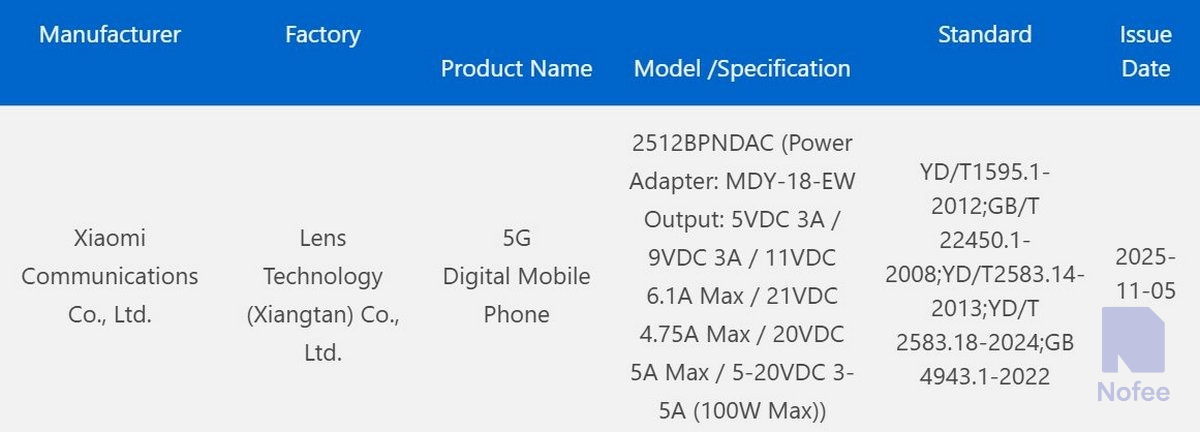 중국에서는 이미 샤오미의 최신 모델인 the17, the17 Pro 및 the17 Pro Max이 출시되었지만, 향후 어느 시점에 출시될 예정인 또 다른 가족 구성원인 the17 울트라도 있다. 최근 중국 3C에서 위성 연결이 없는 모델 번호 2512BPNDAC와 위성 연결이 있는 모델 번호 25128PNA1C의 두 가지 버전으로 인증된 것으로 확인되었다.
