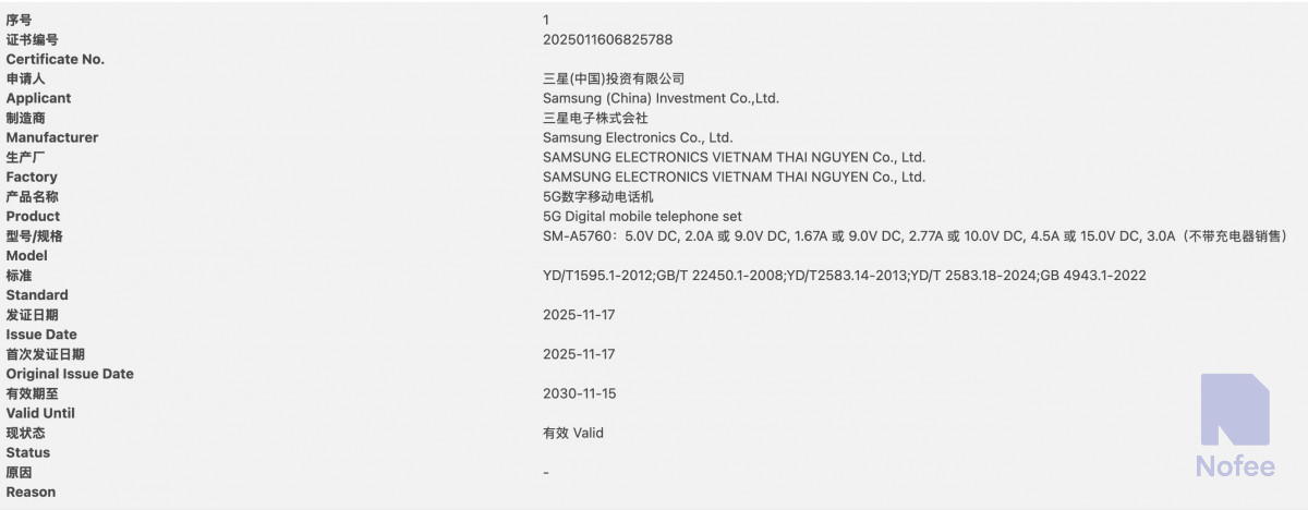 삼성의 플래그십 스마트폰인 갤럭시 S26과 갤럭시 S26+ 모델은 지난 9월 3C 홈페이지에 등재되었다. 이 제품들은 최대 유선 충전 속도는 25W을 지원한다.