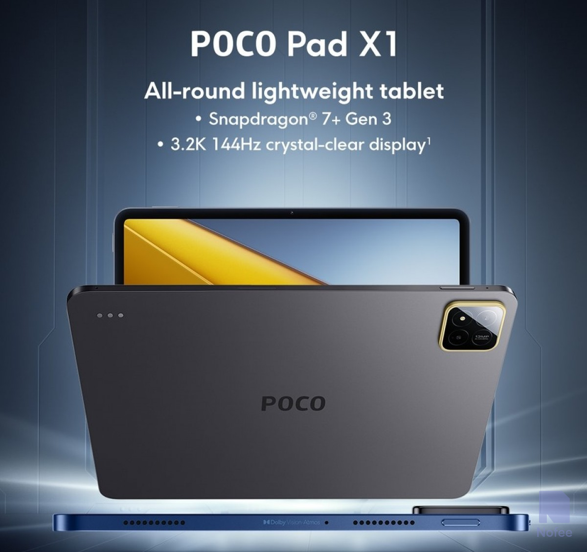 포코 Pad X1은 스냅드래곤 7+ Gen 3 SoC로 구동되며 최대 144Hz 주사율의 3K 해상도 디스플레이를 지원한다. 이 디스플레이는 LTPO 기술을 사용하여 에너지 효율성을 높이고 있다.