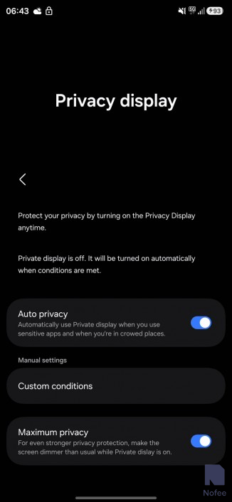 삼성은 특별한 화면 보호 장치 없이 동일한 기능을 달성하는 방법을 알아낸 것으로 보이며, 더 중요한 것은 이 기능을 원하는 대로 켜거나 끌 수 있다는 것이다. One UI 8.5 코드 내에서 처음 발견된 개인 정보 보호 디스플레이 기능은 다음과 같이 설명된다.