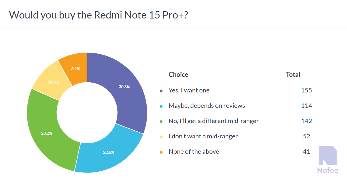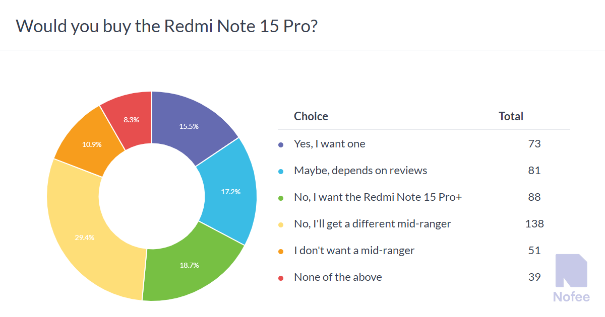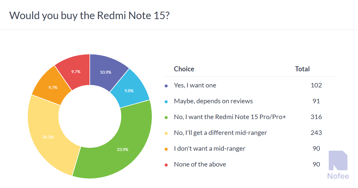 지난주 우리는 여러분께 세 가지 레드미 Note 15 모델 중 어느 제품을 구매하겠는지 물었고, 확실한 승자가 있었다. 이들은 세 가지 가격대로 분류되어 있으므로 샤오미은 아마도 시장에서 공존할 수 있다고 생각했을 것이다. 하지만 세 사람의 결과는 '그렇다', '아마도', '아니오'이다.