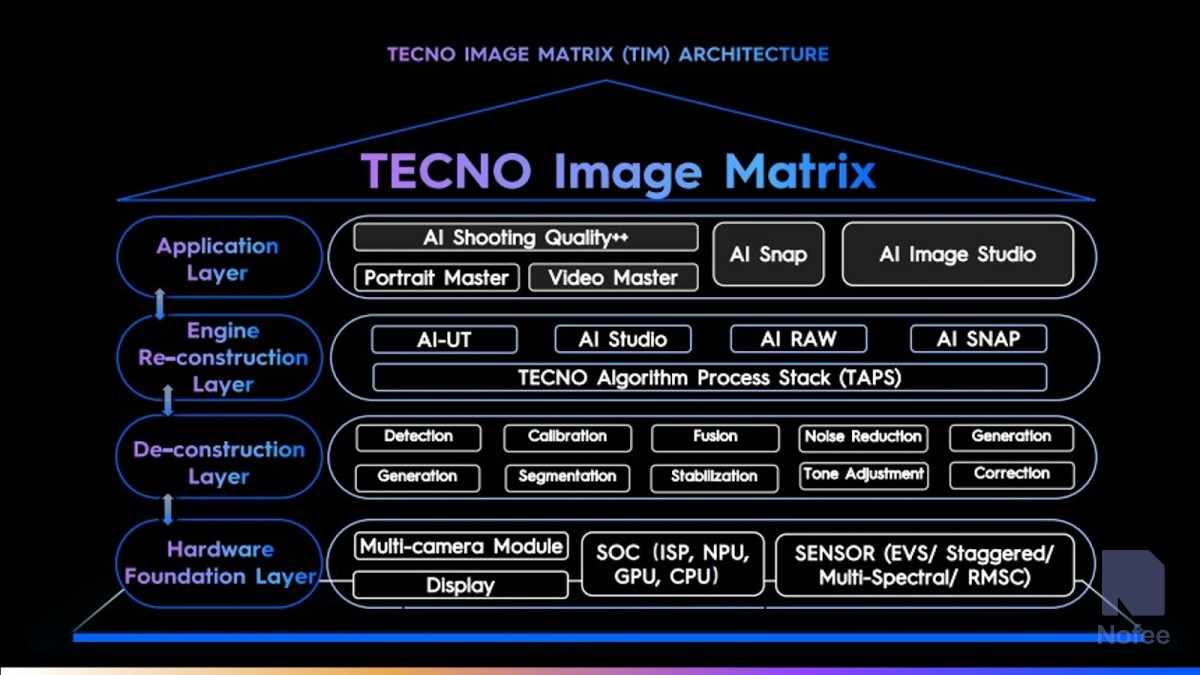 Tecno은 또한 Tecno Image Matrix 또는 줄여서 "TIM"이라고 부르는 것을 계속해서 개발하고 있다. 각각 서로 다른 구성 요소를 포함하는 4개의 레이어로 구성된 엔드 투 엔드 기술 스택이다.