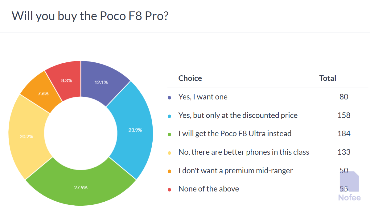 위 차트에서 사람들은 Pro보다 포코 F8 울트라을 더 선호한다는 것을 알 수 있다. 그러나 할인이 어떻게 진행되는지에 따라 달라질 수 있다.