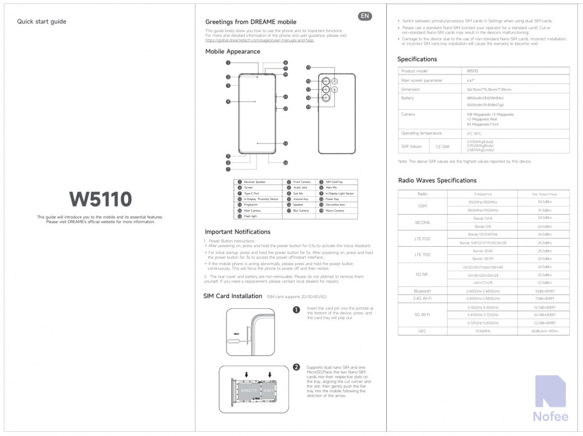 지난 9월 로봇청소기 제조업체인 드림(Dreame)은 스마트폰 시장 진출 계획을 발표했고, 오늘 첫 번째 장치의 사양이 유출된 것으로 알려졌다. 드림 E1의 모델 번호는 W5110이며 이미 EPREL 데이터베이스에서 발견되었다.