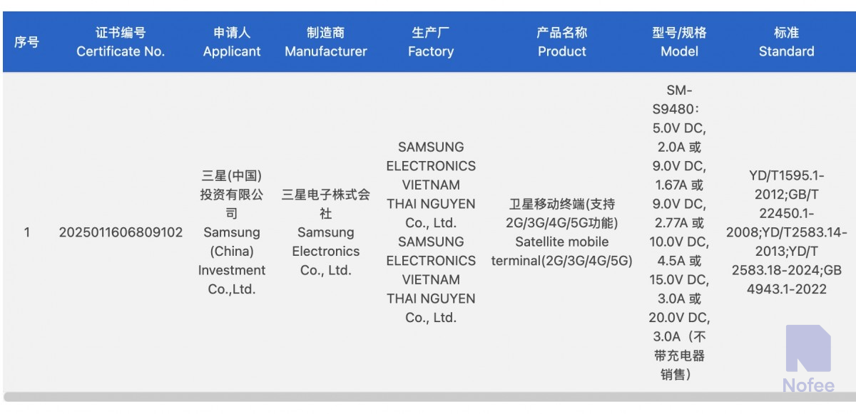 삼성의 스마트폰 모델 번호 SM9480가 최근 중국 3C 인증 웹사이트에 등재되었다. 목록에는 이 장치가 최대 60W의 고속 충전을 지원한다고 나와 있다. 이는 삼성이 이미 구매할 수 있는 60W 전원 어댑터를 출시했기 때문에 특히 흥미롭다.
