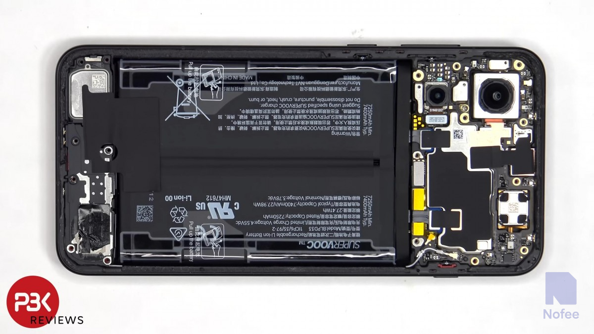 15R에 더 깊이 들어가고 싶다면 무려 17개의 십자 나사를 제거해야 한다. 배터리 케이블은 흑연 필름과 구리 테이프 아래에 숨겨져 있으며 원플러스은 고맙게도 셀 측면에 당김 파우치를 제공하여 제거 과정을 훨씬 쉽게 만들어준다.