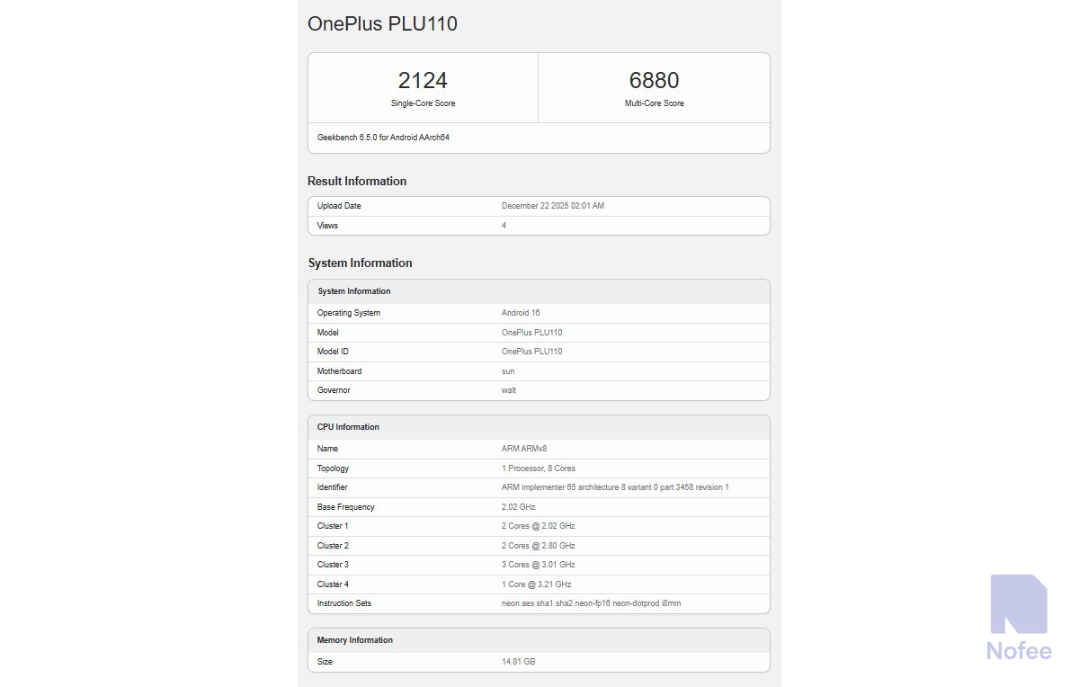 원플러스은 이미 완전히 새로운 종류의 스마트폰을 개발하고 있는 것으로 확인되었다. 최근 유출에 따르면 브랜드는 처음에 두 개의 장치를 출시할 예정이며 그 중 하나는 모델 번호 PLU110으로 Geekbench 온라인 데이터베이스에서 방금 발견된 것으로 보이다.