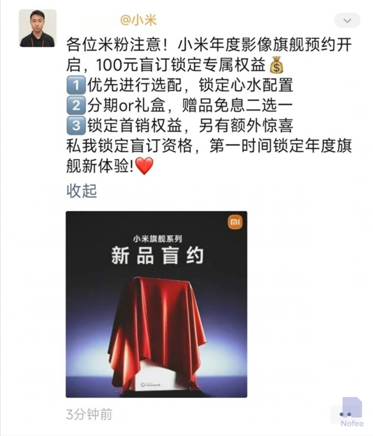 보고서에 따르면, 샤오미 Home 소매 직원은 샤오미 17 울트라이 될 것으로 예상되는 곧 출시될 휴대폰의 블드 사전 주문 프로그램에 참여하기 위해 Mi Fans에게 초대장을 보내기 시작했다. 관심 있는 고객들은 CNY 100 수수료를 지불하여 블라인드 사전 주문을 할 수 있으며, 이를 통해 독점 혜택도 누릴 수 있다.