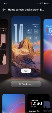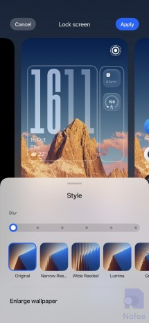 잠금 화면은 사용자 정의에 따라 시스템에서 가장 큰 시각적 변화를 볼 수 있다. OxygenOS 16에는 잠금 화면을 멋지게 꾸밀 수 있는 환상적인 새로운 시계 및 시각 효과 세트가 함께 제공되며, OS은 기계 학습을 최대한 활용하여 배경 화면의 주요 부분 뒤에 화면 요소를 신중하게 배치하여 3차원 효과를 구현한다.