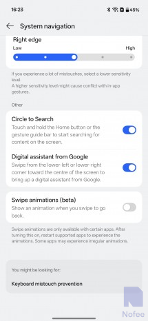 OxygenOS 16에는 탐색 제스처를 위한 새로운 스와이프 애니메이션도 있지만 어떤 이유로 베타 버전이며 기본적으로 비활성화되어 있다. 설정 시스템 및 업데이트 시스템 탐색으로 이동한 다음 맨 아래까지 스크롤하여 활성화해야 한다.
