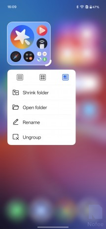 이제 홈 화면과 잠금 화면에 사용자 정의 기능이 추가되었다. 홈 화면의 폴더에는 모양이 다양하고 폴더를 열지 않고도 시작할 수 있는 앱 수에 따라 세 가지 레이아웃이 있다. 이제 앱 아이콘을 확장하여 더 많은 공간을 차지할 수 있다.