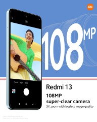 레드미 13은 최초로 108MP 카메라를 장착한 제품이다. 이 카메라는 삼성 ISOCELL HM6 센서를 기반으로 하며, 센서 내 3배 줌 기능을 제공한다. 또한 셀카 카메라는 작년 레드미 12의 8MP에서 13MP 센서로 업그레이드되었다.