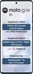 모토로라모토로라 Moto G96디스플레이6.67인치1080x2400무게178g배터리5500mAh카메라5000만 화소2개 렌즈칩퀄컴 스냅드래곤 7s Gen 28GB다른 제품과 비교모토로라모토로라 Moto G96디스플레이6.67인치1080x2400무게178g배터리5500mAh카메라5000만 화소2개 렌즈칩퀄컴 스냅드래곤 7s Gen 28GB다른 제품과 비교핵심 스펙 한눈에화면6.67인치 / POLED / 1080 x 2400성능퀄컴 스냅드래곤 7s Gen 2 / Samsung / 4nm성능 점수613,782 / 210,279 / 120,532카메라5000만 / 광각 + 초광각 / f/2.2배터리5500mAh / 리튬폴리머 / 30W상세 스펙 더보기자주 묻는 질문Q공시지원금과 선택약정의 차이가 뭔가요?Q번호이동과 기기변경의 차이가 뭔가요?Q어떤 할인 유형이 더 유리한가요?Q위약금은 어떻게 계산되나요?Q가격이 왜 매장마다 다른가요?Q온라인으로 개통이 가능한가요?